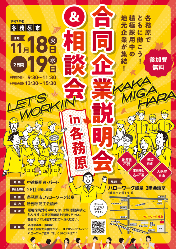 2025年11月19日 各務原市合同企業説明会&相談会に参加いたします!